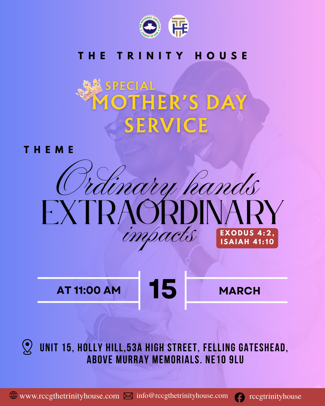 At RCCG The Trinity House, we are a church of love, fellowship, and worship. We provide a welcoming space for Christians to pray, learn, and grow through Bible studies, prayer meetings, worship services, and outreach programs. Join us and experience the joy of a vibrant Christian community.